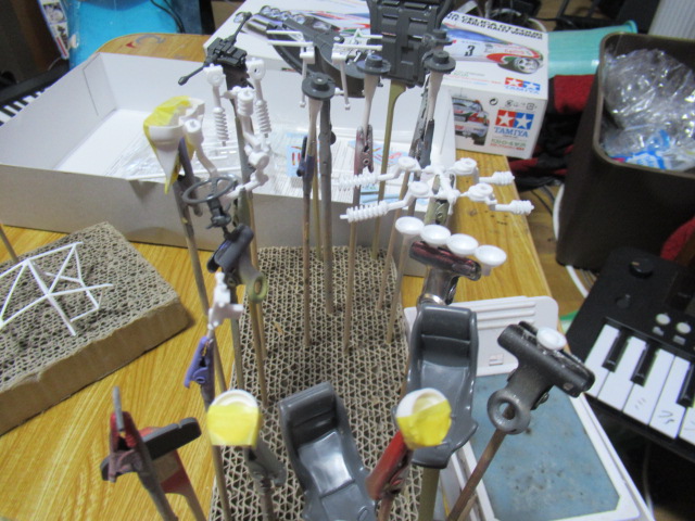 とりあえずはこんな感じでセミグロスブラックを吹く準備をしました。