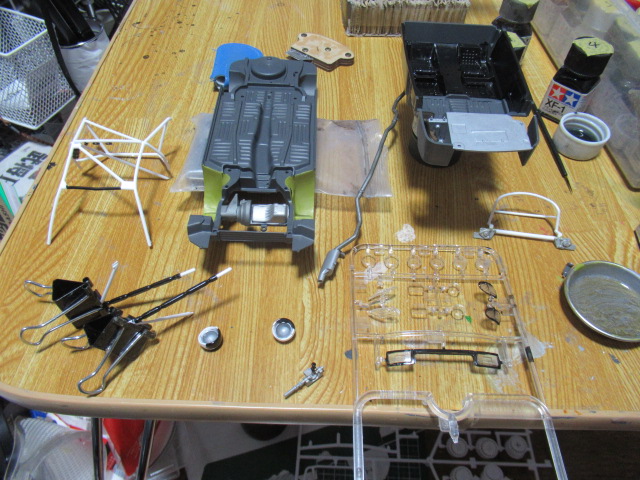 今日の午後は、シャーシなどの部分塗装に注力してみました。すべてエナメル塗料での筆塗りです。結構、おおざっぱに塗ったのでリタッチをする必要があるパーツをこれから吟味してみるつもりです。