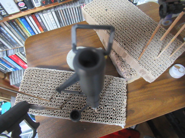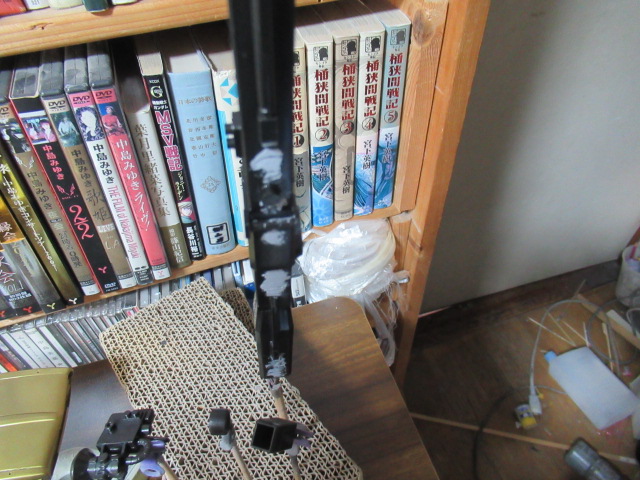 ジャイアントバズにもラッカーパテを充填しました。写真の箇所に目立つ傷があったのでこれはサーフェイサーではどうにもならないので仕方がありません。今日はこれらの合わせ目けしの作業が中心になります。