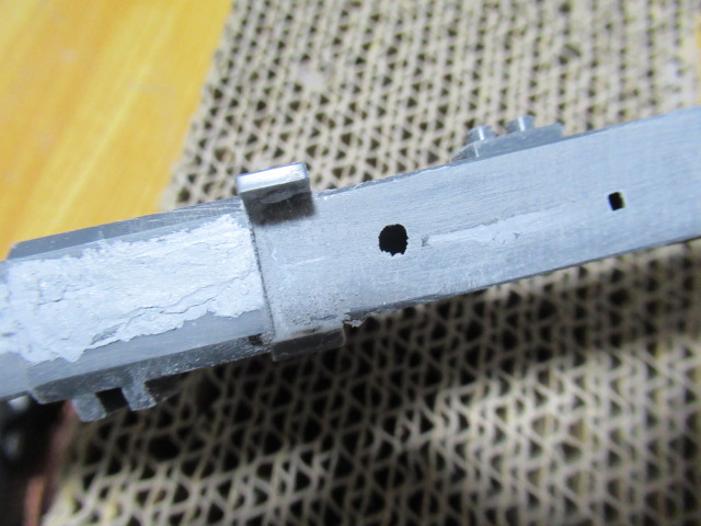 ビームバズーカの合わせ目で邪魔なモールドを切り取り合わせ目を消しました。あとで5mmの丸棒を使って再生させます。