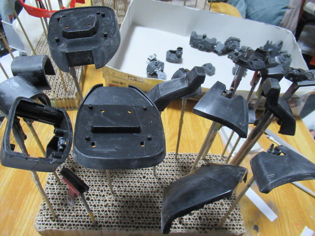アーマーなどの黒い部分のパーツです。今日、ジャーマングレーで吹きます。